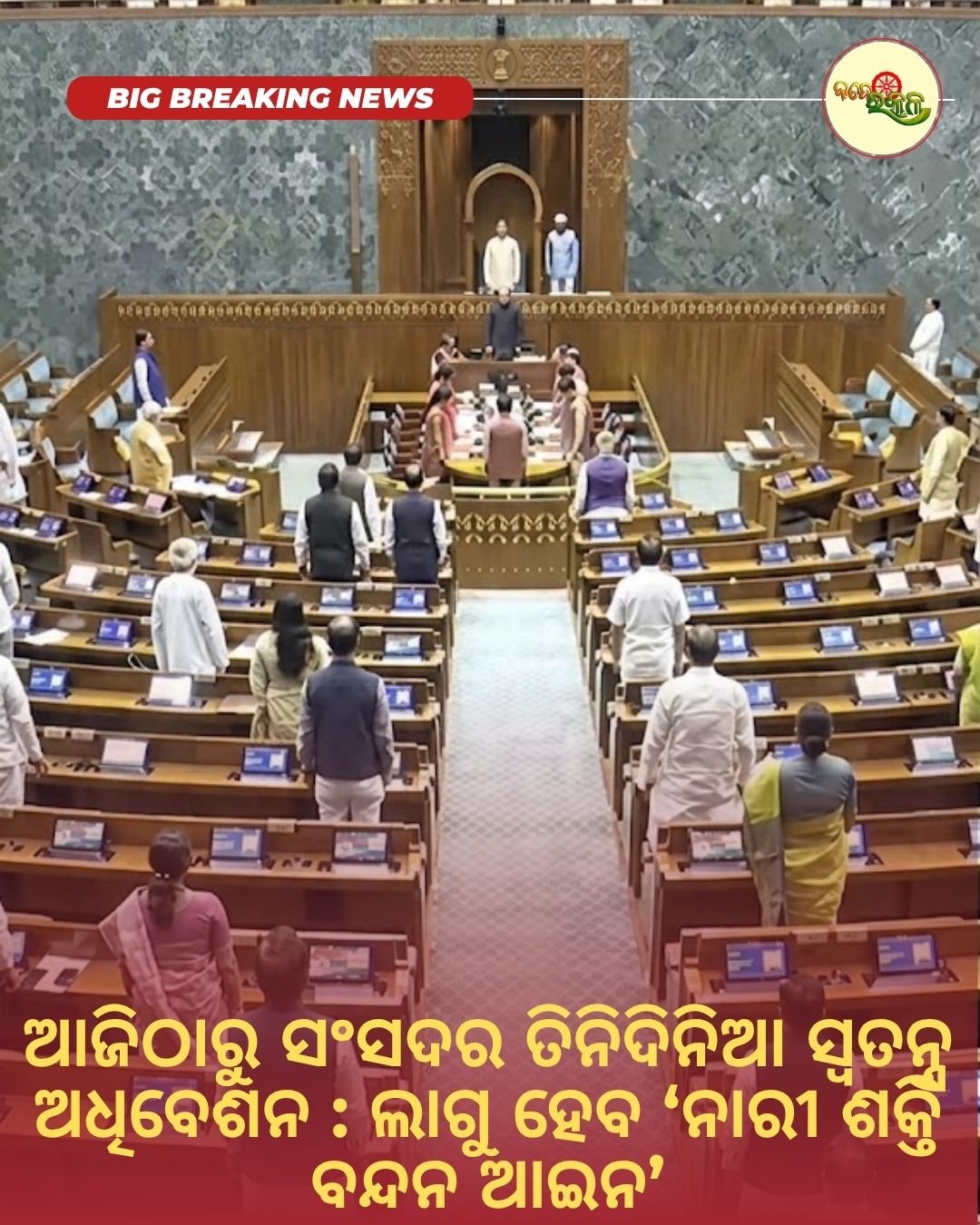 ଆଜିଠାରୁ ସଂସଦର ତିନିଦିନିଆ ସ୍ୱତନ୍ତ୍ର ଅଧିବେଶନ : ଲାଗୁ ହେବ ‘ନାରୀ ଶକ୍ତି ବନ୍ଦନ ଆଇନ’
