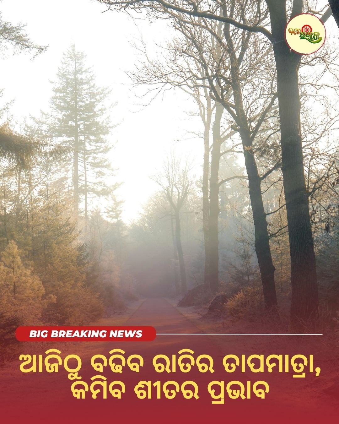 ପାଣିପାଗ ବିଶେଷଜ୍ଞଙ୍କ ସୂଚନାଅନୁସାରେ, ଉପକୂଳ ଓଡ଼ିଶା ସହ ପଶ୍ଚିମ ଓଡ଼ିଶାର ଅଧିକାଂଶ ଅଞ୍ଚଳରେ ରାତି ତାପମାତ୍ରା ୧୫ ଡିଗ୍ରୀ ସେଲସିଅସ କିମ୍ବା ଏହାଠାରୁ ଅଧିକ ରହିବ। ଆଜି ରାତିରୁ ତାପମାତ୍ରା ଆହୁରି ସାମାନ୍ୟ ବଢ଼ିବାର ସମ୍ଭାବନା ରହିଛି ।