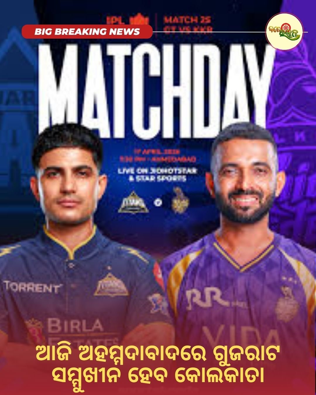 ଚଳିତ ଆଇପିଏଲର ୨୫ତମ ଲିଗ ମ୍ୟାଚରେ ଆଜି ଗୁଜରାଟ ଓ କୋଲକାତା ମୁହାଁମୁହିଁ ହେବେ। ଦୁଇ ଦଳ ମଧ୍ୟରେ ଏହି ମ୍ୟାଚକୁ ନେଇ ଉତ୍ସାହ ବଢ଼ିଛି । କୋଲକାତା ପାଇଁ ଏହି ମ୍ୟାଚ ବହୁତ ଗୁରୁତ୍ୱପୂର୍ଣ୍ଣ, କାରଣ ଦଳକୁ ଜିତିବା ଆବଶ୍ୟକ ହୋଇପଡ଼ିଛି । ଅନ୍ୟପଟେ ଘରୋଇ ମାଟିରେ ଖେଳୁଥିବା ଗୁଜରାଟ ଜିତ ର ଧାରା ଅବ୍ୟାହତ ରଖିବାକୁ ଲକ୍ଷ୍ୟ ରଖିଛି । ଏହା ଫଳରେ ଏକ ରୋମାଞ୍ଚକର ଓ ହାର୍ଡ ଫାଇଟ୍ ମ୍ୟାଚ ଦେଖିବାକୁ ମିଳିପାରେ।