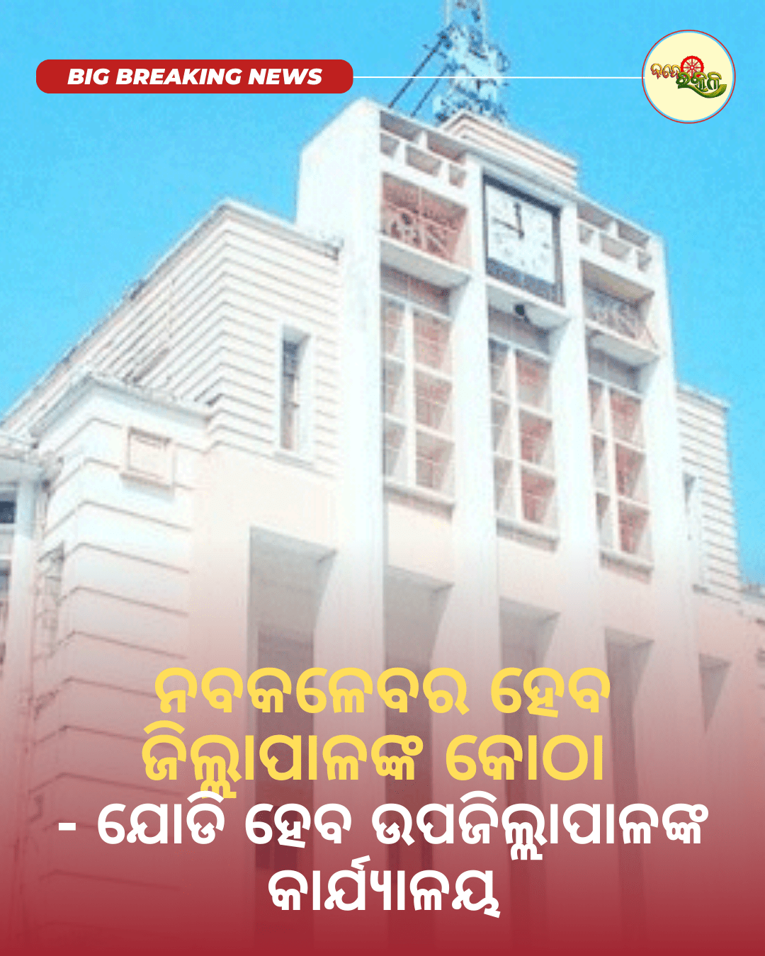 ଭୁବନେଶ୍ୱର : ରାଜ୍ୟରେ ନିର୍ମାଣ ହେବ ନୂତନ ମଡେଲ ଜିଲ୍ଲାପାଳ କାର୍ଯ୍ୟାଳୟ। ନବକଳେବର ହେବ ଜିଲ୍ଲାପାଳଙ୍କ କୋଠା । ଜିଲ୍ଲାପାଳ କାର୍ଯ୍ୟାଳୟରେ ଯୋଡି ହେବ ଉପ ଜିଲ୍ଲାପାଳଙ୍କ କାର୍ଯ୍ୟାଳୟ । ଜିଲ୍ଲାରେ ରାଜସ୍ୱ ପ୍ରଶାସନିକ ୟୁନିଟ, ଜନସଂଖ୍ୟା, କାର୍ଯ୍ୟଭାରକୁ ବିଚାରକୁ ନେଇ ଜିଲ୍ଲା ଗୁଡ଼ିକୁ ୩ଟି ବର୍ଗରେ ବିଭକ୍ତ କରାଯାଇଛି । ବୃହତ, ମଧ୍ୟମ ଓ କ୍ଷୁଦ୍ର ଏପରି ୩ଟି ବର୍ଗରେ ଏହାକୁ ବିଭକ୍ତ କରାଯାଇଛି। ବୃହତ ବର୍ଗରେ ସମ୍ବଲପୁର, ପୁରୀ, କେନ୍ଦୁଝର, କଟକ ଓ ମୟୂରଭଞ୍ଜ ଜିଲ୍ଲା ରହିଥିବା ବେଳେ ମଧ୍ୟମ ବର୍ଗରେ କନ୍ଧମାଳ, ରାୟଗଡା, ବାଲେଶ୍ଵର, ଯାଜପୁର, ବଲାଙ୍ଗୀର, ଖୋର୍ଦ୍ଧା, କଳାହାଣ୍ଡି, ଭଦ୍ରକ, ବରଗଡ, କେନ୍ଦ୍ରାପଡା, କୋରାପୁଟ, ଅନୁଗୁଳ, ନବରଙ୍ଗପୁର, ଢ଼େଙ୍କାନାଳ ଓ ଜଗତ ସିଂହପୁର ଜିଲ୍ଲା ରହିଛି । ସେହିପରି କ୍ଷୁଦ୍ର ବର୍ଗରେ ନୟାଗଡ଼, ମାଲକାନଗିରି, ନୂଆପଡା, ସୁବର୍ଣ୍ଣପୁର, ଝାରସୁଗୁଡା, ଗଜପତି, ବୌଦ୍ଧ, ଦେଓଗଡ଼ ଜିଲ୍ଲା ରହିଛି ।