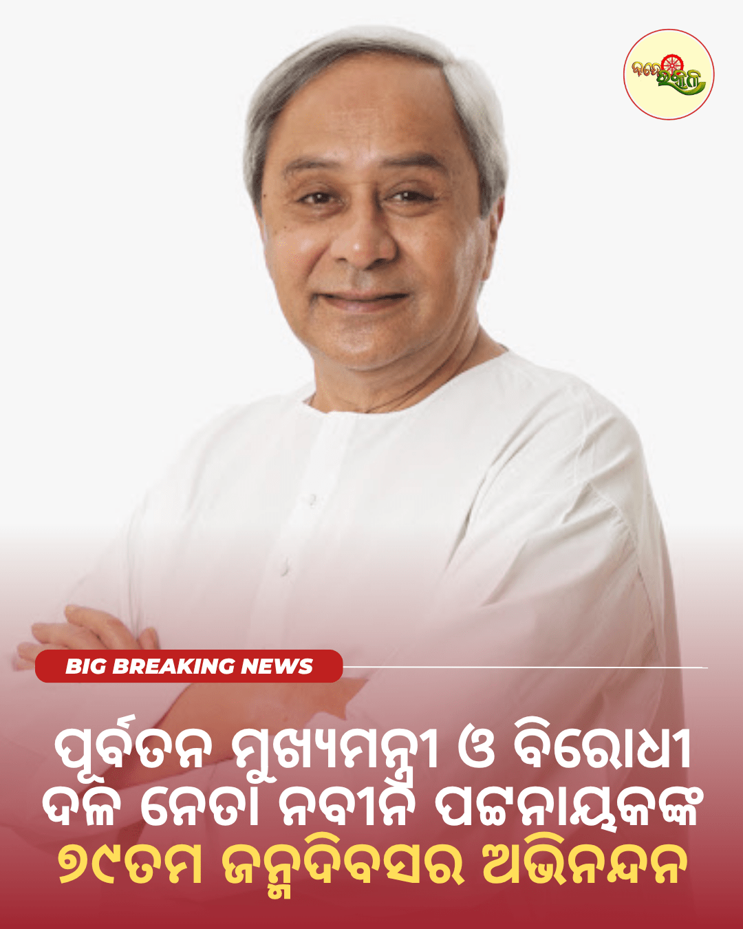 ଆଜି ପୂର୍ବତନ ମୁଖ୍ୟମନ୍ତ୍ରୀ ଓ ବିରୋଧୀ ଦଳ ନେତା ଶ୍ରୀ ନବୀନ ପଟ୍ଟନାୟକଙ୍କ ୭୯ତମ ଜନ୍ମଦିବସ। ‘ଝଡ଼ର ଇଗଲ’ ଭାବେ ପରିଚିତ ଏହି ଜନନେତା ସାଢେ ଚାରିକୋଟି ଓଡ଼ିଆଙ୍କ ହୃଦୟରେ ଅଲଗା ସ୍ଥାନ ଦାବି କରିଛନ୍ତି। ଜନସେବା, ଶାନ୍ତ ନେତୃତ୍ୱ ଓ ନିରନ୍ତର ସମର୍ପଣ ଦ୍ୱାରା ସେ ରାଜ୍ୟ ଓ ଦେଶରେ ସୃଷ୍ଟି କରିଛନ୍ତି ଅଲଗା ପରିଚୟ।