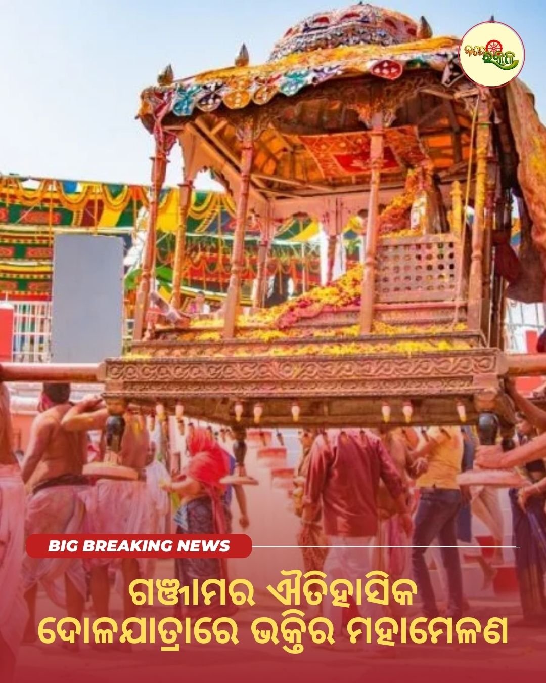 ଆଜି ୧୬ ଠାକୁରଙ୍କ ମହାମେଳଣ ଅବସରରେ ଗଞ୍ଜାମ ସହର ଭକ୍ତିର ରଙ୍ଗରେ ରଙ୍ଗାଇଯାଇଥିଲା। ଢୋଳ, ନିଶାନ ଓ କାହାଳୀର ଧ୍ୱନିରେ ପରିବେଶ ମୁଗ୍ଧ ହୋଇଯାଇଥିଲା। ହଜାର ହଜାର ଭକ୍ତଙ୍କ ଭିଡ଼ ମଧ୍ୟରେ ଦୋଳଯାତ୍ରା ଶାନ୍ତିପୂର୍ଣ୍ଣ ଭାବେ ସମାପ୍ତ ହୋଇଥିଲା।