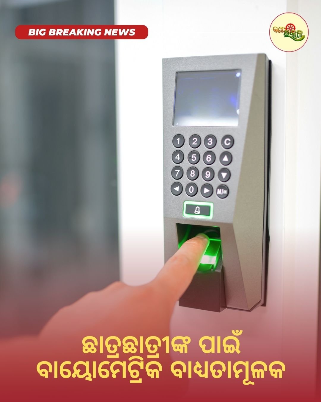 ଛାତ୍ରଛାତ୍ରୀଙ୍କ ପାଇଁ ବାୟୋମେଟ୍ରିକ ବାଧ୍ୟତାମୂଳକ