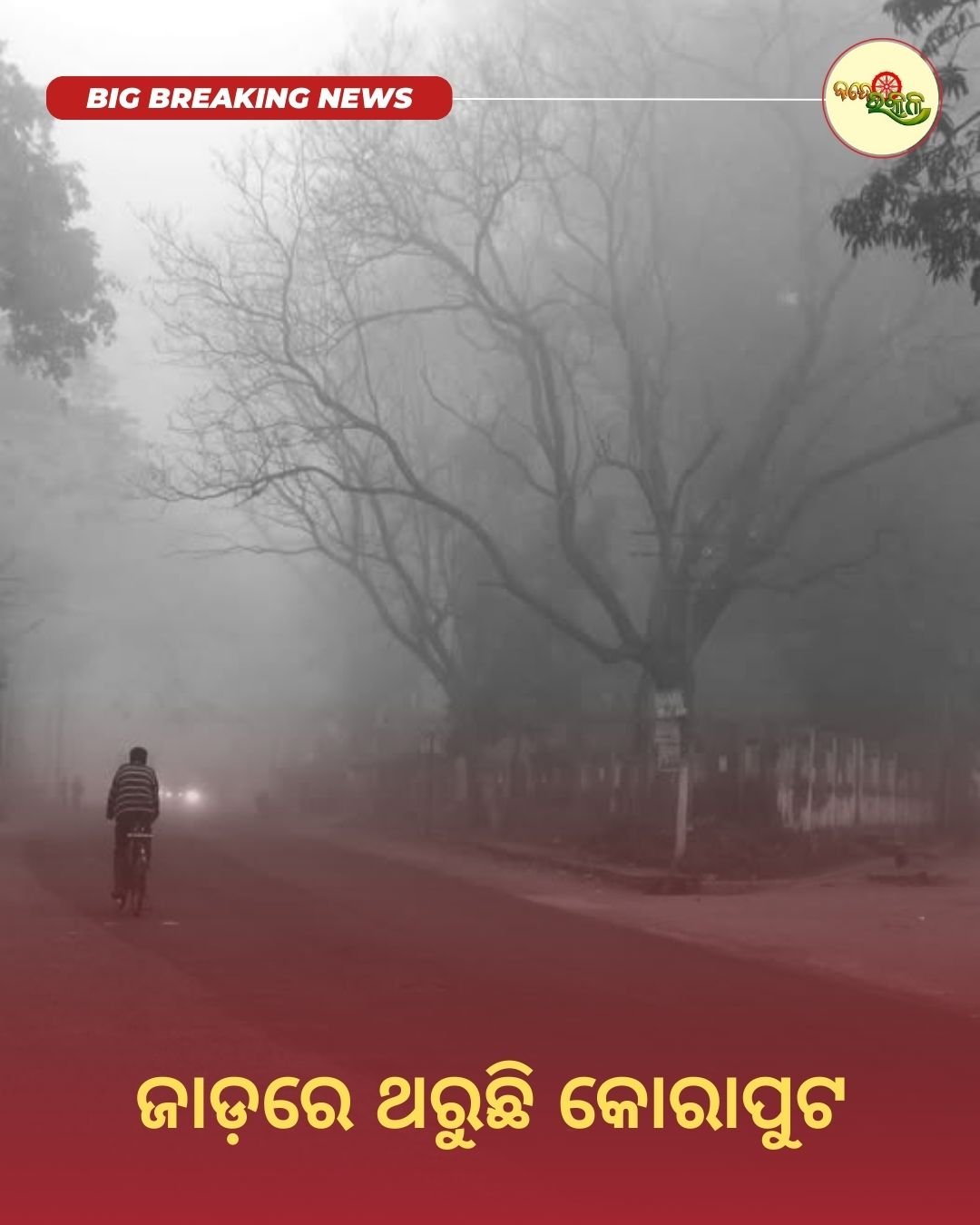 କୋରାପୁଟ : ଅଥୟ କରୁଛି ଶୀତ । ଅସ୍ତବ୍ୟସ୍ତ କରୁଛି ଜାଡ଼ । ଶୀତ ଲହରୀରେ ଥରୁଛି ସମଗ୍ର ଓଡ଼ିଶା । ପଶ୍ଚିମରୁ ଆଭ୍ୟନ୍ତରୀଣ ଓଡ଼ିଶା ସବୁଠାରେ ଦେଖିବାକୁ ମିଳୁଛି ଶୀତର ଦୌରାତ୍ମ୍ୟ । ରାଜ୍ୟରେ ଅନେକ ସ୍ଥାନରେ ଘନ କୁହୁଡ଼ି ପରିଲକ୍ଷିତ ହେଉଛି । ଉପକୂଳବର୍ତ୍ତୀ ଜିଲ୍ଲା ଗୁଡିକ ଅପେକ୍ଷା ଦକ୍ଷିଣ, ଉତ୍ତର, ପଶ୍ଚିମ ଏବଂ ଆଭ୍ୟନ୍ତରୀଣ ଓଡ଼ିଶାର ଜିଲ୍ଲା ଗୁଡିକରେ ପ୍ରବଳ ଶୀତ ଅନୁଭୂତ ହେଉଛି । ଏହି କ୍ରମରେ କୋରାପୁଟରେ ପାରଦ ୪.୮ ଡିଗ୍ରୀ ଛୁଇଁଛି । ରାଜ୍ୟରେ ବିଭିନ୍ନ ଅଞ୍ଚଳରେ ଶୀତ ସହିତ ଘନ କୁହୁଡି ପଡୁଥିବା ବଳେ ୪ ଦିନ ପରେ ଶୀତ ପ୍ରକୋପ କମିବ ବୋଲି ସମ୍ଭାବନା ରହିଥିବା ପାଣିପାଗ ବିଭାଗ ଆକଳନ କରିଛି । ଅର୍ଥାତ ଆସନ୍ତା ୪ ଦିନ ପରେ ରାଜ୍ୟର ସର୍ବନିମ୍ନ ତାପମାତ୍ରା ୨-୩ ଡିଗ୍ରୀ ପର୍ଯ୍ୟନ୍ତ ବୃଦ୍ଧି ପାଇବା ସମ୍ଭାବନା ରହିଛି ।