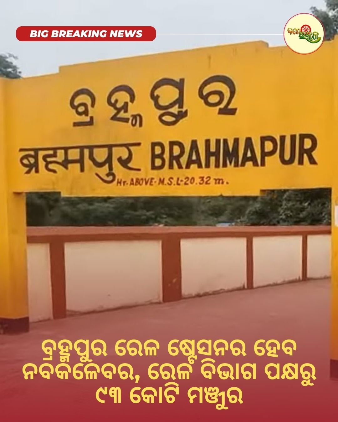 ଦକ୍ଷିଣ ଓଡ଼ିଶାର ପ୍ରମୁଖ ରେଳ କେନ୍ଦ୍ର ବ୍ରହ୍ମପୁର ରେଳ ଷ୍ଟେସନର ପୁନଃ ବିକାଶ କାର୍ଯ୍ୟ ପାଇଁ ପ୍ରଥମ ପର୍ଯ୍ୟାୟରେ ପ୍ରାୟ ୯୩ କୋଟି ଟଙ୍କା ଅନୁମୋଦନ ମିଳିଛି । ଏହି ଅର୍ଥରେ ଷ୍ଟେସନର ଆଧୁନିକ ଭିତ୍ତିଭୂମି ଗଠନକୁ ଗତି ମିଳିବ।