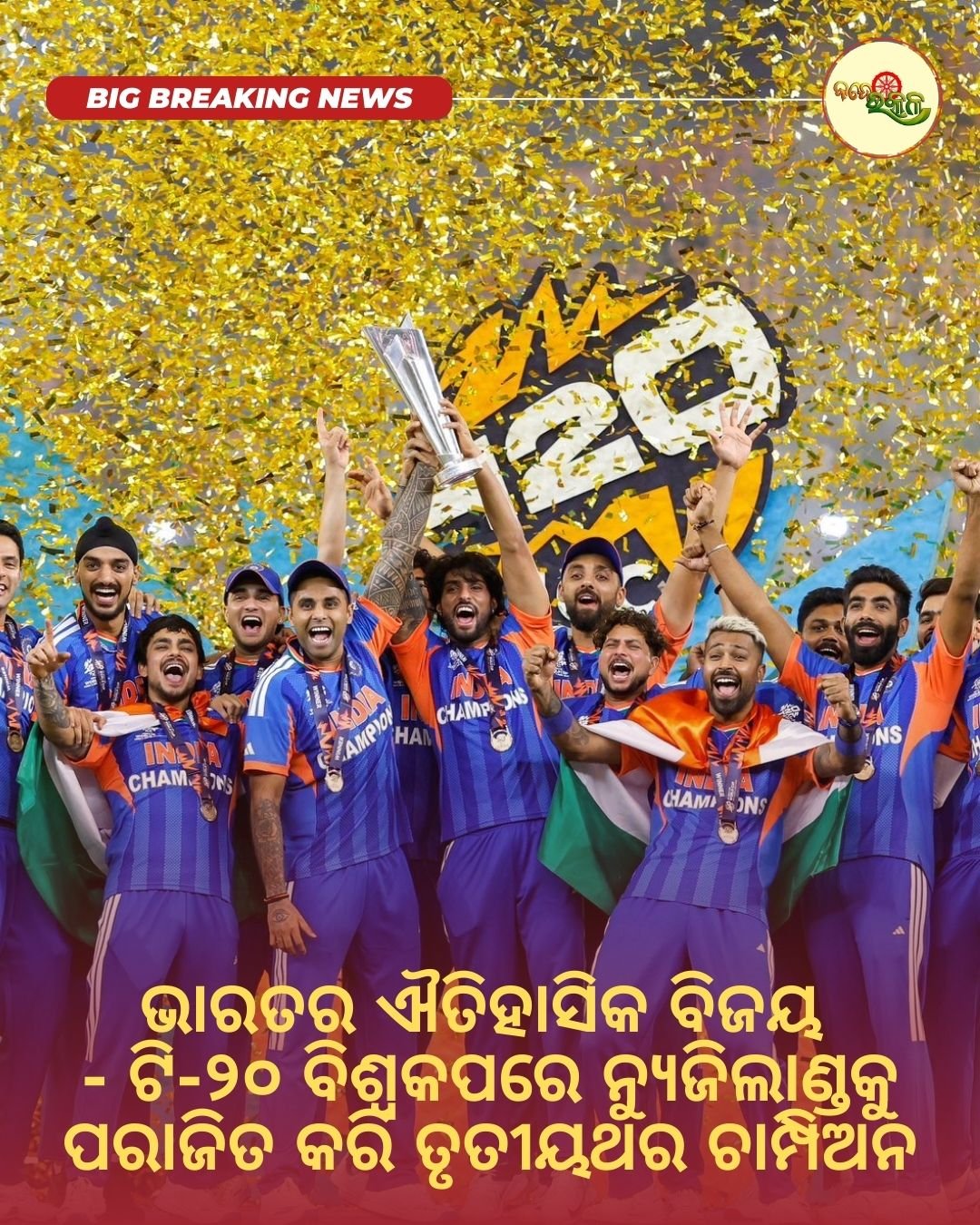 ଭାରତର ଐତିହାସିକ ବିଜୟ : ଟି-୨୦ ବିଶ୍ୱକପରେ ନ୍ୟୁଜିଲାଣ୍ଡକୁ ପରାଜିତ କରି ତୃତୀୟଥର ଚାମ୍ପିଅନ