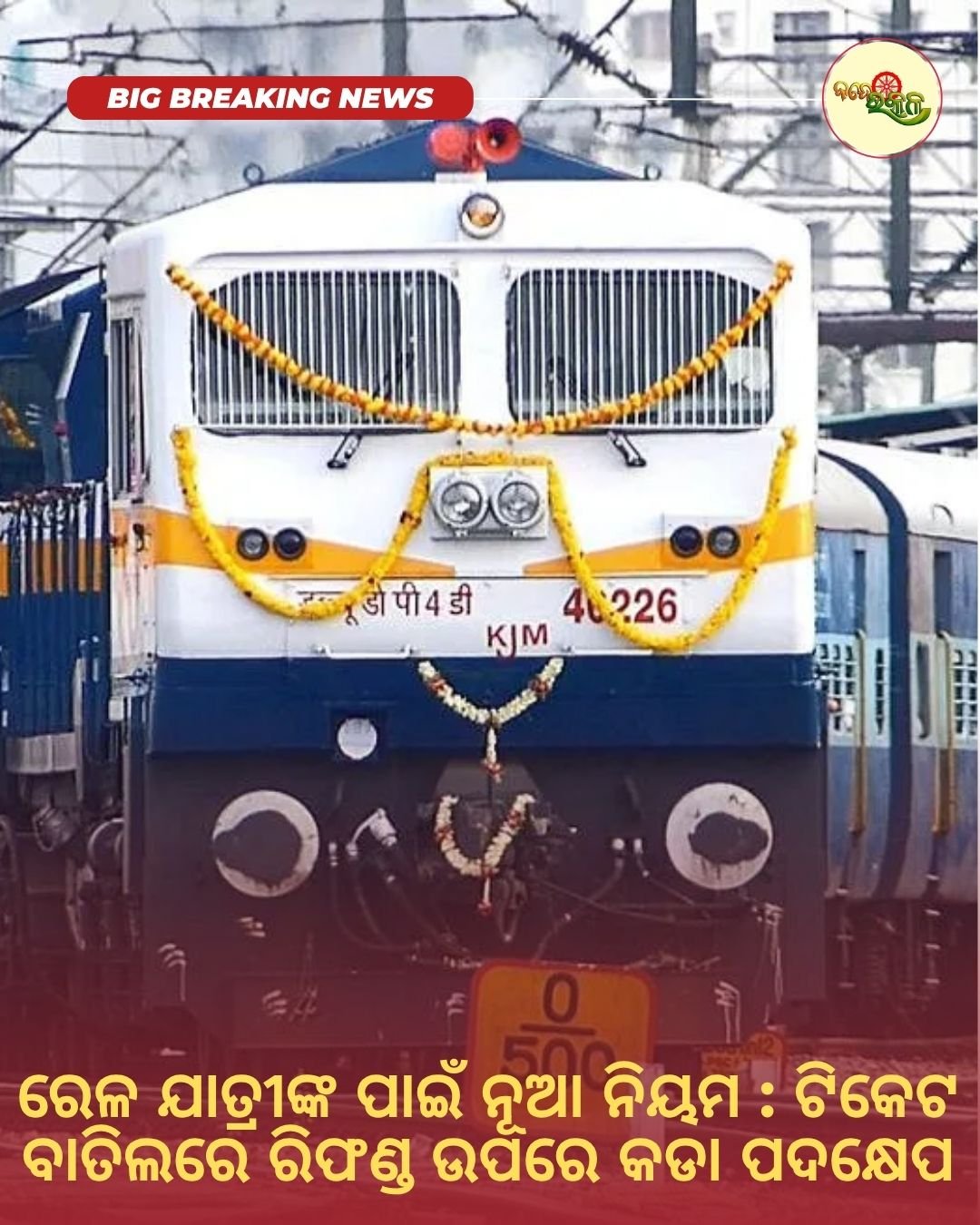 ରେଳ ଯାତ୍ରୀଙ୍କ ପାଇଁ ଏକ ଗୁରୁତ୍ୱପୂର୍ଣ୍ଣ ଖବର । କେନ୍ଦ୍ର ରେଳମନ୍ତ୍ରୀ ଶ୍ରୀଯୁକ୍ତ ଅଶ୍ୱିନୀ ବୈଷ୍ଣବ ଟିକେଟ ବାତିଲ ଓ ରିଫଣ୍ଡ ବ୍ୟବସ୍ଥାରେ ବଡ଼ ପରିବର୍ତ୍ତନ ଘୋଷଣା କରିଛନ୍ତି। ନୂଆ ନିୟମ ଅନୁଯାୟୀ, ଟ୍ରେନ ଚାଲିବାର ୮ ଘଣ୍ଟା ମଧ୍ୟରେ ଯଦି ଯାତ୍ରୀ ଟିକେଟ ବାତିଲ କରନ୍ତି, ତେବେ ସେମାନେ କୌଣସି ଟଙ୍କା ଫେରସ୍ତ ପାଇବେ ନାହିଁ । ଏହି ପଦକ୍ଷେପ ଯାତ୍ରୀମାନଙ୍କୁ ଆଗୁଆ ଯୋଜନା କରିବାକୁ ପ୍ରୋତ୍ସାହିତ କରିବା ସହ ଅନାବଶ୍ୟକ ବାତିଲ କମାଇବାକୁ ଉଦ୍ଦେଶ୍ୟ ରହିଛି । ରେଳ ବିଭାଗର ଏହି ନିଷ୍ପତ୍ତି ଯାତ୍ରା ବ୍ୟବସ୍ଥାକୁ ଆହୁରି ସୁଚାରୁ କରିବାରେ ସହାୟକ ହେବ ବୋଲି କୁହାଯାଉଛି ।