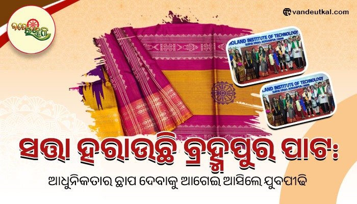 ବ୍ରହ୍ମପୁର : ପାଟ ଶାଢ଼ୀ କଥା ପଡିଲେ ପ୍ରଥମେ ଆଗକୁ ଆସେ ବ୍ରହ୍ମପୁର ପାଟ । ଯାହାର ସୌନ୍ଦର୍ଯ୍ୟ ଓ କାରିଗରୀ କାମକୁ ନେଇ ସାରା ବିଶ୍ୱରେ ଚର୍ଚ୍ଚାରେ ରୁହେ। ରାଜ୍ୟଠୁ ନେଇ ବିଦେଶରେ ସବୁଠି ସମସ୍ତଙ୍କ ପସନ୍ଦ ବ୍ରହ୍ମପୁର ପାଟ । ହେଲେ ଏହି ବ୍ରହ୍ମପୁର ପାଟ ଶାଢ଼ୀ ଏବେ ତାର ସତ୍ତା ହରାଉଛି । ଧୀରେ ଧୀରେ ହଜିବାକୁ ବସିଲାଣି ବ୍ରହ୍ମପୁର ପାଟ । ଆଉ ଏହାରି ଭିତରେ ବ୍ରହ୍ମପୁର ପାଟ ଶାଢ଼ୀକୁ ଯୁବପିଢ଼ି ଏକାଠି ହୋଇ ଆଧୁନିକତାର ଛାପ ଦେଇ ବିଶ୍ୱସ୍ତରରେ ପହଞ୍ଚାଇବା ପାଇଁ ଅଣ୍ଟା ଭିଡିଛନ୍ତି ।
