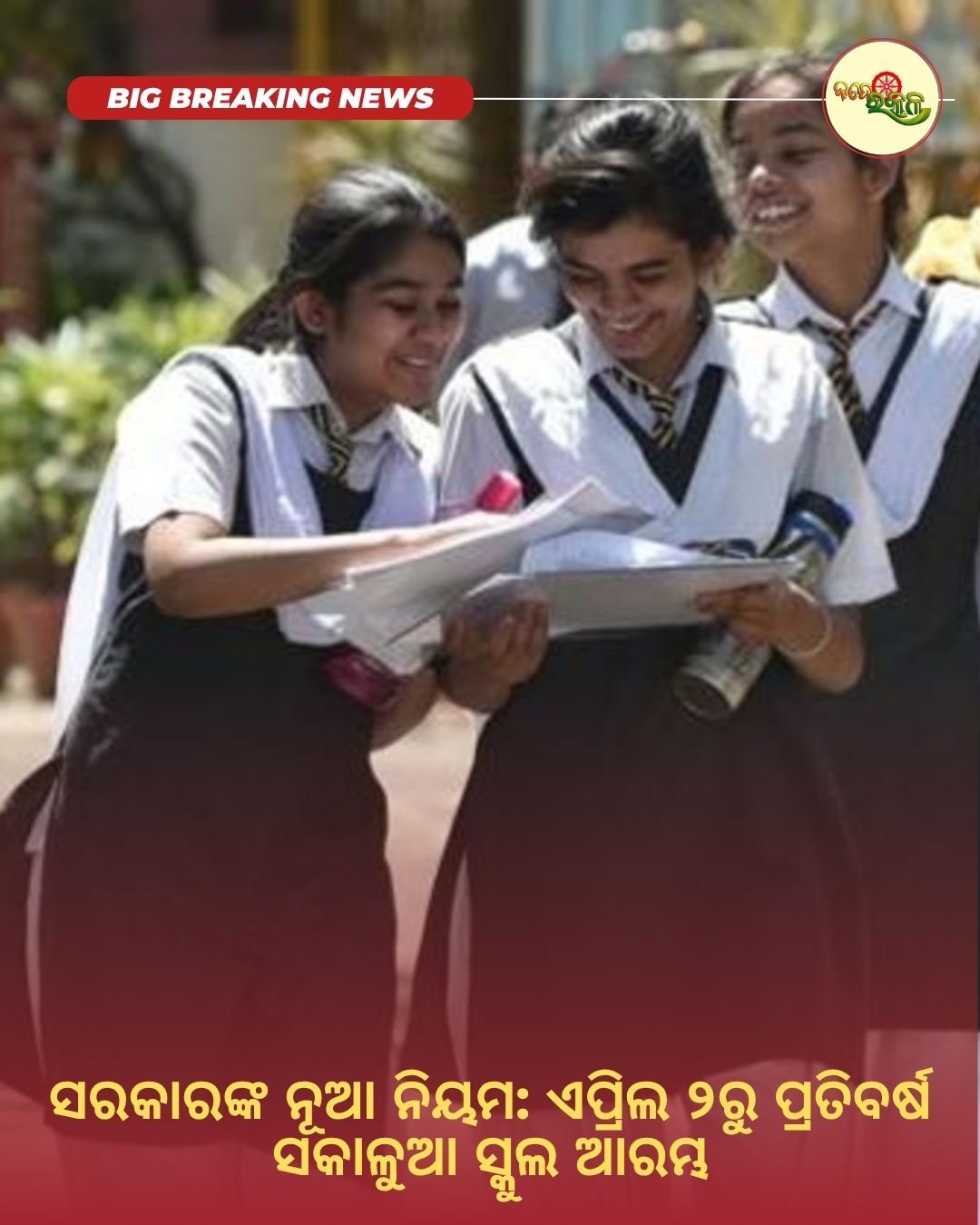 କେବଳ ଏହି ବର୍ଷ ନୁହେଁ, ପ୍ରତିବର୍ଷ ଏପ୍ରିଲ ୨ ତାରିଖରୁ ଗ୍ରୀଷ୍ମ ଛୁଟି ପର୍ଯ୍ୟନ୍ତ ସକାଳୁଆ ସ୍କୁଲ ଚାଲିବ ବୋଲି ସୂଚନା ମିଳିଛି। ଏନେଇ ବିଦ୍ୟାଳୟ ଓ ଗଣଶିକ୍ଷା ବିଭାଗ ପକ୍ଷରୁ ସମସ୍ତ ଜିଲ୍ଲାପାଳଙ୍କୁ ଚିଠି ପଠାଯାଇଛି।
