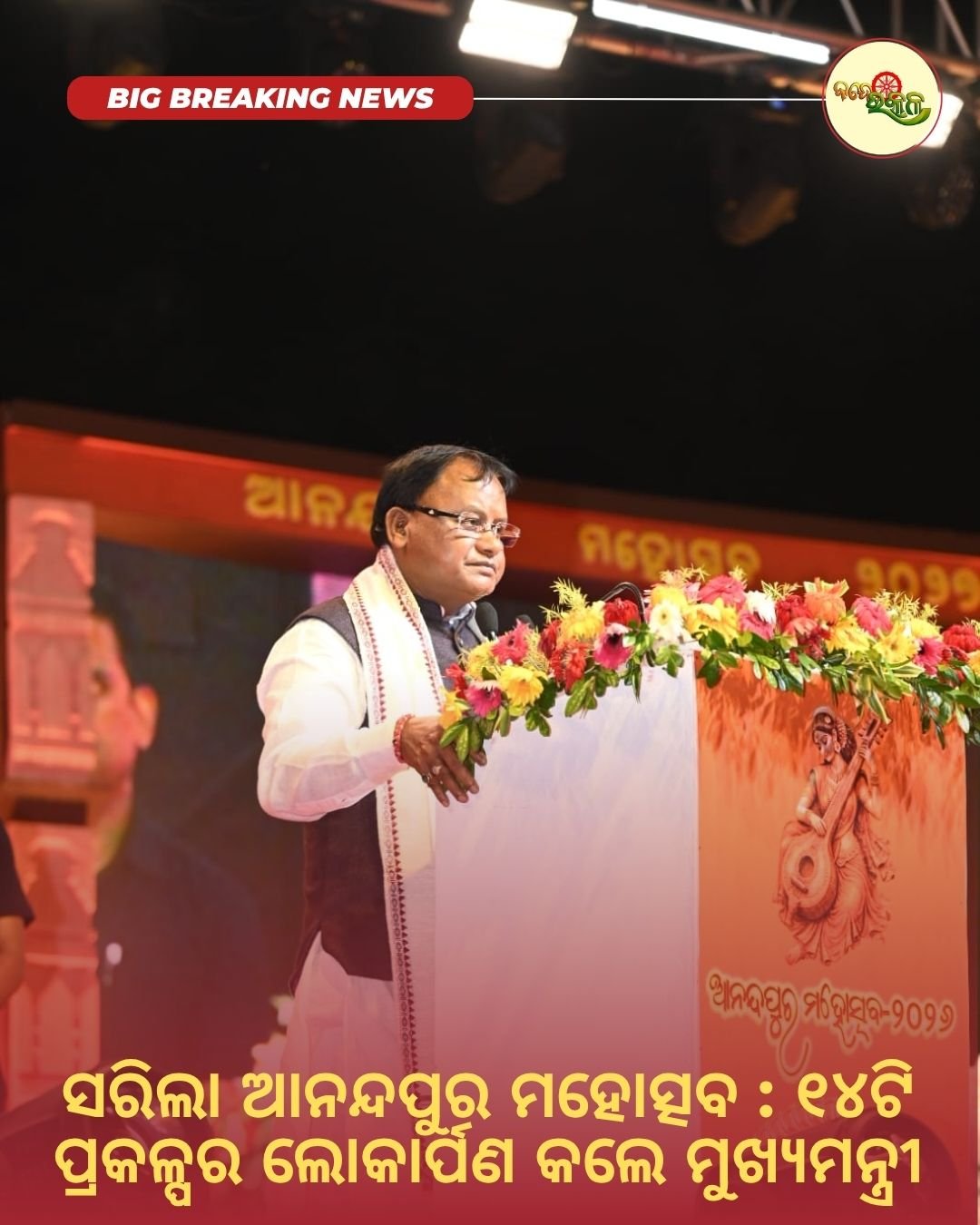 ସରିଲା ଆନନ୍ଦପୁର ମହୋତ୍ସବ : ୧୪ଟି ପ୍ରକଳ୍ପର ଲୋକାର୍ପଣ କଲେ ମୁଖ୍ୟମନ୍ତ୍ରୀ