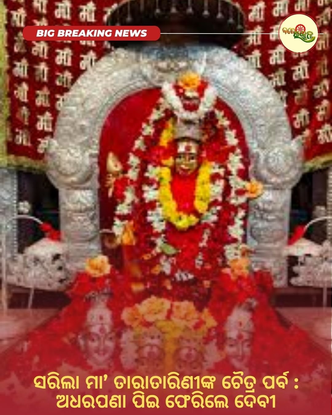 ପାରମ୍ପରିକ ଆଚାରାନୁସାରେ ଚୈତ୍ର ମାସର ଶେଷ ଦିନରେ ମା’ଙ୍କ ନିକଟରେ ‘ଅଧରପଣା’ ନିତି ପାଳନ କରାଯାଇଥିଲା। କ୍ଷୀର, ଘିଅ ଓ ନବାତ ଭଳି ପବିତ୍ର ସାମଗ୍ରୀରେ ପ୍ରସ୍ତୁତ ପଣା ମା’ଙ୍କୁ ଅର୍ପଣ କରାଯାଇ ପରେ ପଣା ହାଣ୍ଡିକୁ ବାହାରେ ନେଇ ଭାଙ୍ଗି ଦିଆଯାଇଥିଲା। ଏହି ନିତିର ଏକ ବିଶେଷ ଧାର୍ମିକ ମାନ୍ୟତା ରହିଛି ।