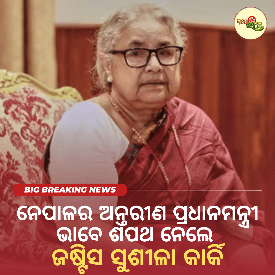 ବର୍ତ୍ତମାନର ପରିସ୍ଥିତି ଉପରେ ସମୀକ୍ଷା କରି ନେପାଳର ଅନ୍ତରୀଣ ପ୍ରଧାନମନ୍ତ୍ରୀ ଭାବେ ଶପଥ ନେଇଛନ୍ତି ଦେଶର ପୂର୍ବତନ ପ୍ରଧାନ ବିଚାରପତି ଜଷ୍ଟିସ ସୁଶୀଳା କାର୍କି। ଗତକାଲି ନୂଆ କରି ତିଆରି ହୋଇଥିବା ସ୍ୱରାଷ୍ଟ୍ର ମନ୍ତ୍ରଣାଳୟ