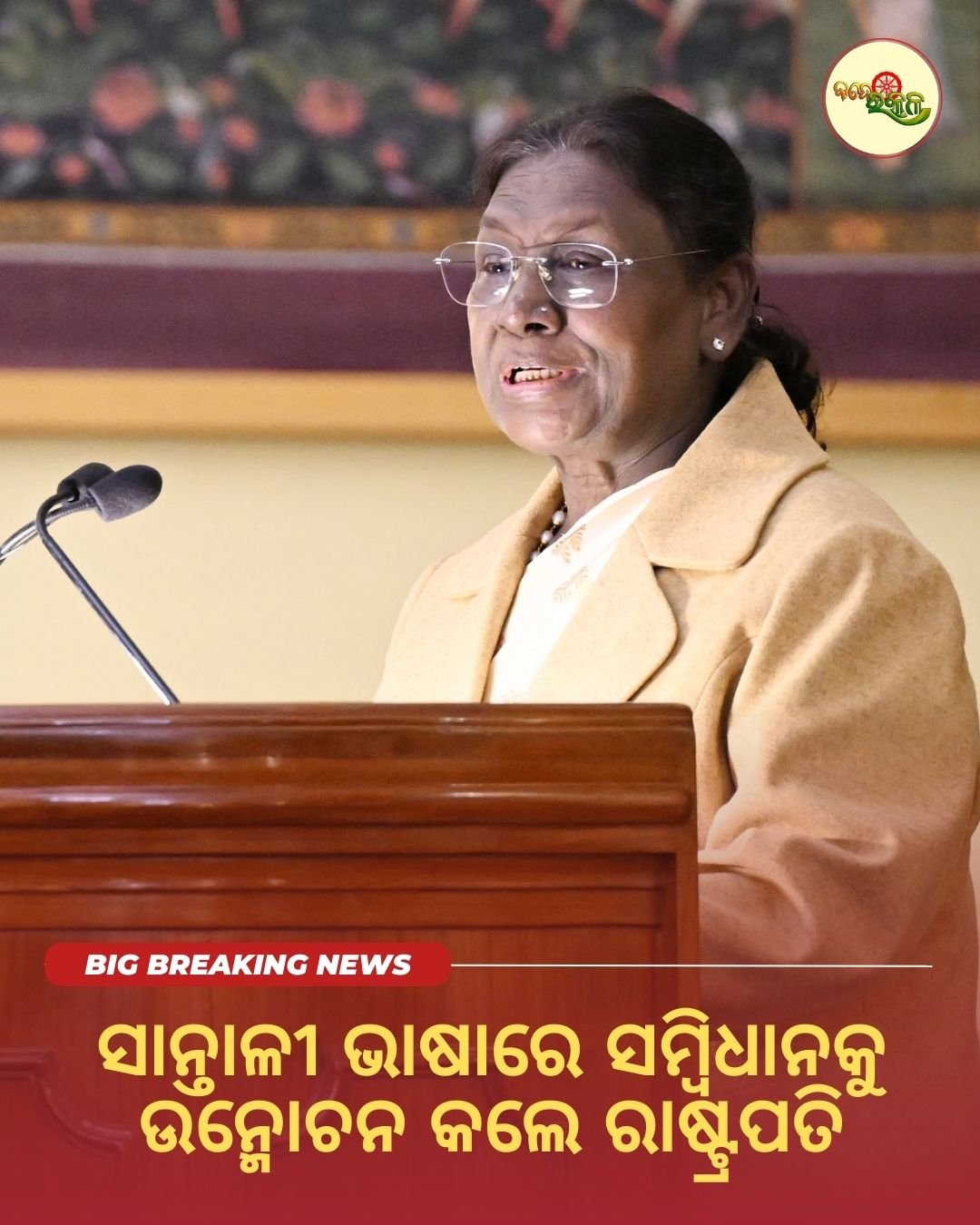 ମାନ୍ୟବର ରାଷ୍ଟ୍ରପତି ଶ୍ରୀମତୀ ଦ୍ରୌପଦୀ ମୁର୍ମୁ ନୂଆଦିଲ୍ଲୀର ରାଷ୍ଟ୍ରପତି ଭବନରେ ଆୟୋଜିତ ଏକ ସ୍ୱତନ୍ତ୍ର କାର୍ଯ୍ୟକ୍ରମରେ ସାନ୍ତାଳୀ ଭାଷାରେ ଭାରତର ସମ୍ବିଧାନକୁ ଉନ୍ମୋଚନ କରିଛନ୍ତି । ଯାହା ଅଧିକ ଭାଷାଗତ ଅନ୍ତର୍ଭୁକ୍ତିକରଣ ଏବଂ ଗଣତାନ୍ତ୍ରିକ