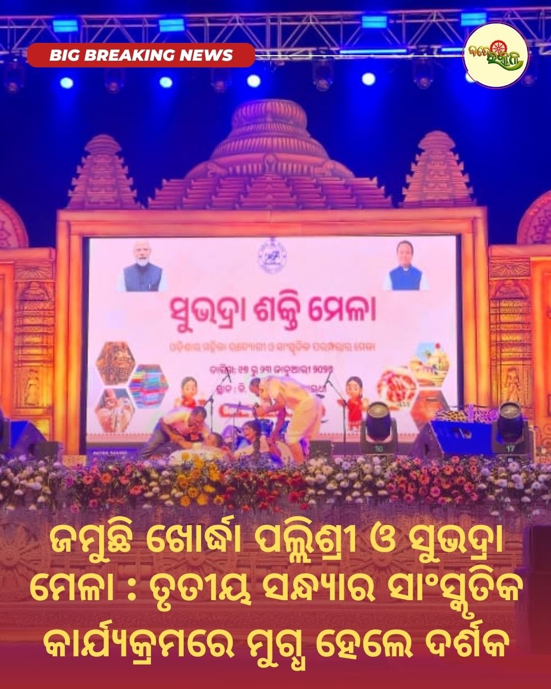 ଖୋର୍ଦ୍ଧା : ଜମୁଛି ଖୋର୍ଦ୍ଧା ପଲ୍ଲିଶ୍ରୀ ଓ ସୁଭଦ୍ରା ମେଳା । ଖୋର୍ଦ୍ଧା ଜିଲ୍ଲା ସଦର ମହକୁମାର ଟିଏସି ରୋଡ ସ୍ଥିତ ବିଡିଏ ପଡ଼ିଆରେ ଚାଲୁଥିବା ଏହି ପଲ୍ଲୀଶ୍ରୀ ମେଳା ଓ ସୁଭଦ୍ରା ମେଳାକୁ