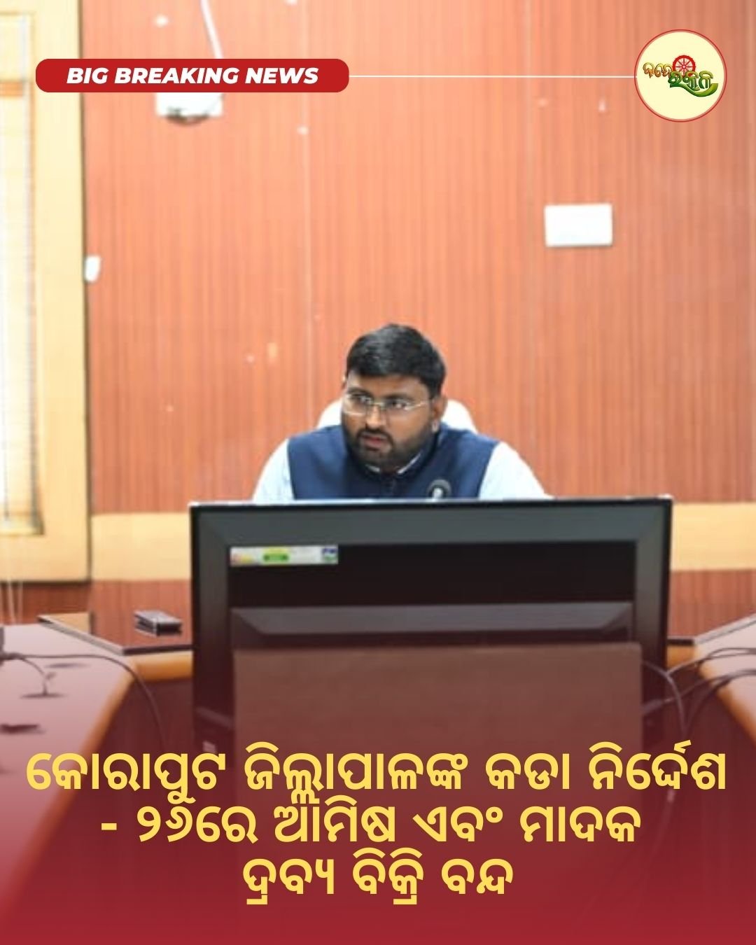 କୋରାପୁଟ : ଗଣତନ୍ତ୍ର ଦିବସରେ ବଜାରରେ ବିକ୍ରି ହୋଇପାରିବନି ଆମିଷ କି ମଦ । ଆଉ ଏହି ନିୟମ ନମାନିଲେ ଦୃଢ଼ ଆକ୍ସନ । ଏଭଳି କଡା ନିର୍ଦ୍ଦେଶ ଦେଇଛନ୍ତି କୋରାପୁଟ ଜିଲ୍ଲାପାଳ ଶ୍ରୀଯୁକ୍ତ