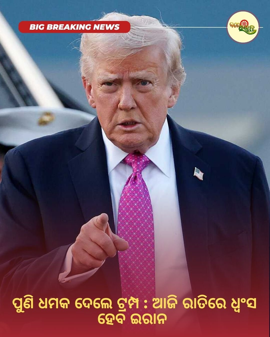 ଆମେରିକା : ପୁଣି ଧମକ ଦେଲେ ଟ୍ରମ୍ପ । କହିଲେ ରାତାରାତି ଇରାନ ହୋଇଯିବ ଧ୍ୱଂସ। ହର୍ମୁଜ୍ ପ୍ରଣାଳୀ ଖୋଲିବା ପାଇଁ ୧୦ ଦିନିଆ ସମୟସୀମା ଶେଷ ହେବାର ଗୋଟିଏ ଦିନ ପୂର୍ବରୁ ଟ୍ରମ୍ପ