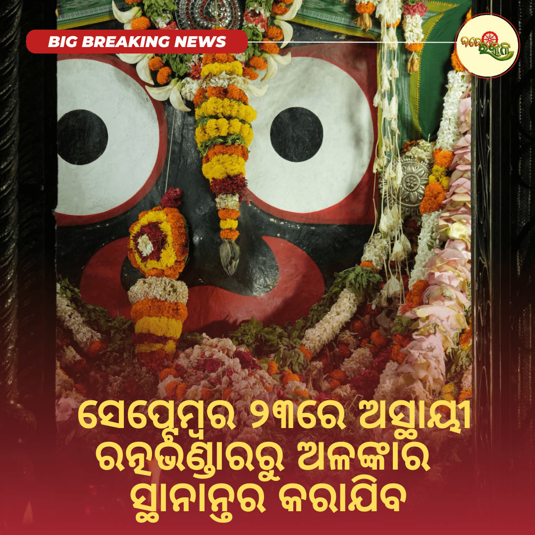 ଅପେକ୍ଷାର ହେବ ଅନ୍ତ ! ଅସ୍ଥାୟୀ ରତ୍ନଭଣ୍ଡାରରୁ ମୂଳ ରତ୍ନଭଣ୍ଡାରକୁ ସ୍ଥାନାନ୍ତର କରାଯିବ ମହାପ୍ରଭୁଙ୍କ ଅଳଙ୍କାର l ଅମୃତବେଳାରେ ହେବ ସ୍ଥାନାନ୍ତର l ସୂଚନା ଅନୁଯାୟୀ ସେପ୍ଟେମ୍ବର ୨୩ ସକାଳ ୭ଟା ୧୭ରୁ ୧୧.୧୭