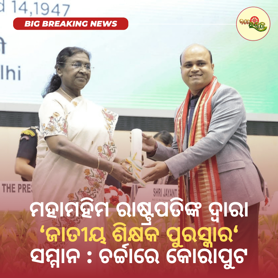 ମହାମହିମ ରାଷ୍ଟ୍ରପତିଙ୍କ ଦ୍ଵାରା ‘ଜାତୀୟ ଶିକ୍ଷକ ପୁରସ୍କାର‘ ସମ୍ମାନ : ଚର୍ଚ୍ଚାରେ କୋରାପୁଟ