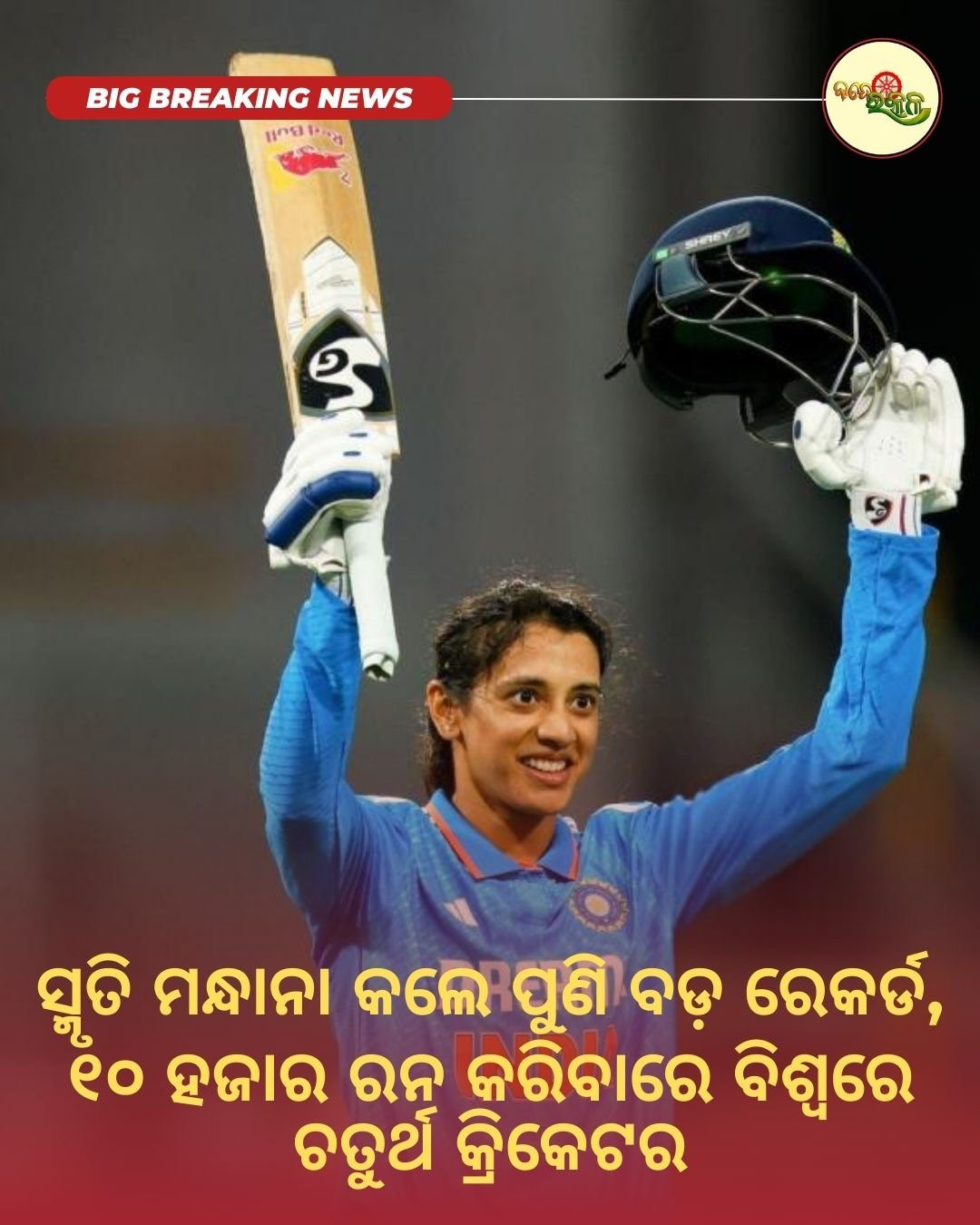 ସ୍ମୃତି ମନ୍ଧାନା କଲେ ପୁଣି ବଡ଼ ରେକର୍ଡ । ଭାରତୀୟ ମହିଳା କ୍ରିକେଟ ଦଳର ଓପନର ସ୍ମୃତି ମନ୍ଧାନା ଅନ୍ତର୍ଜାତୀୟ କ୍ରିକେଟରେ ୧୦ ହଜାର ରନ ପୂରଣ କରିଛନ୍ତି । ମନ୍ଧାନା ୧୦ ହଜାର