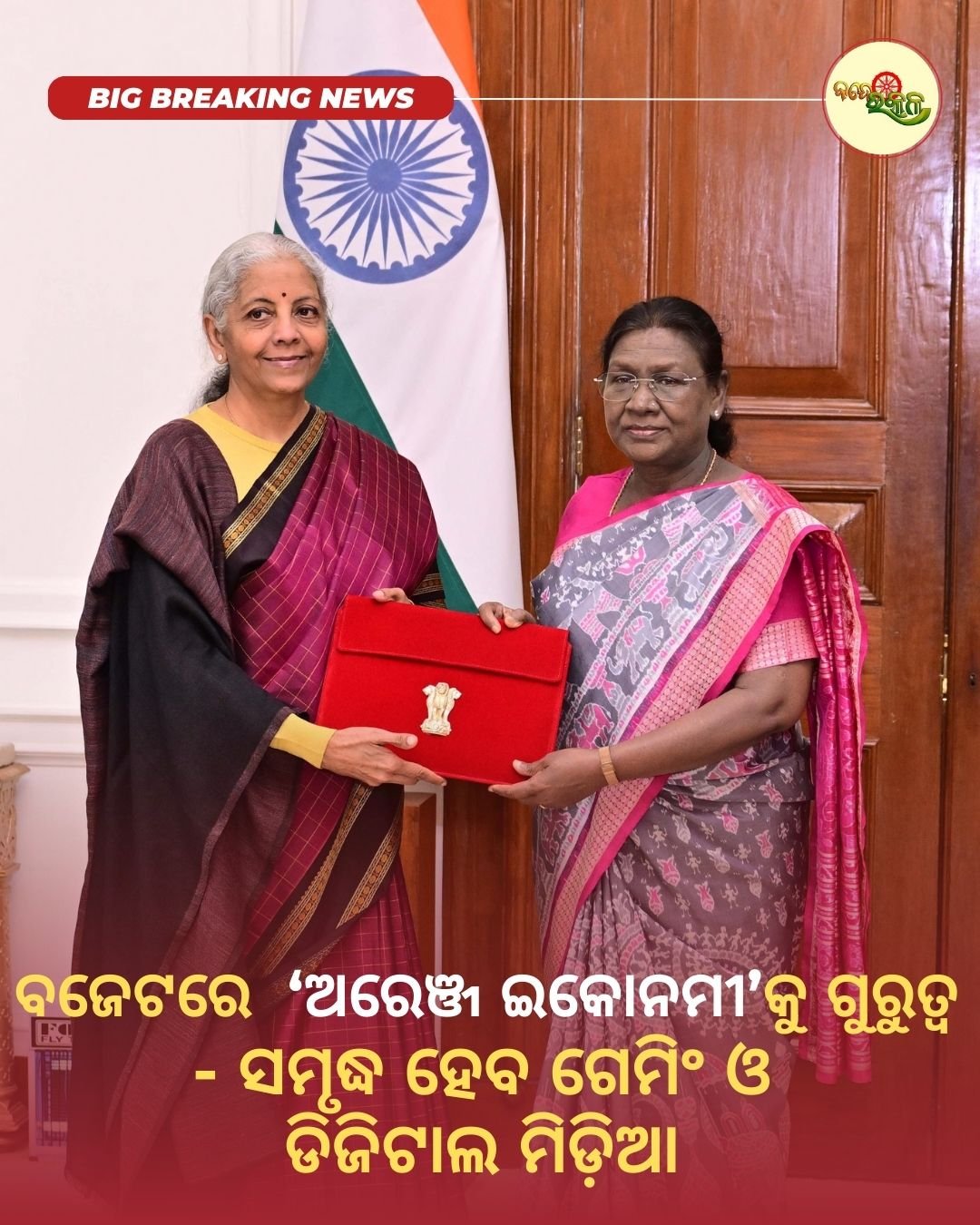 ଭୁବନେଶ୍ୱର : ସଂସଦରେ ୨୦୨୬–୨୭ ଆର୍ଥିକ ବର୍ଷ ପାଇଁ କେନ୍ଦ୍ର ବଜେଟ ଉପସ୍ଥାପନ କରିଛନ୍ତି ଅର୍ଥମନ୍ତ୍ରୀ ନିର୍ମଳା ସୀତାରମଣ । ବଜେଟ ଭାଷଣ ସମୟରେ ଅର୍ଥମନ୍ତ୍ରୀ ପ୍ରଥମଥର ପାଇଁ ‘ଅରେଞ୍ଜ ଇକୋନମୀ’ (Orange Economy)