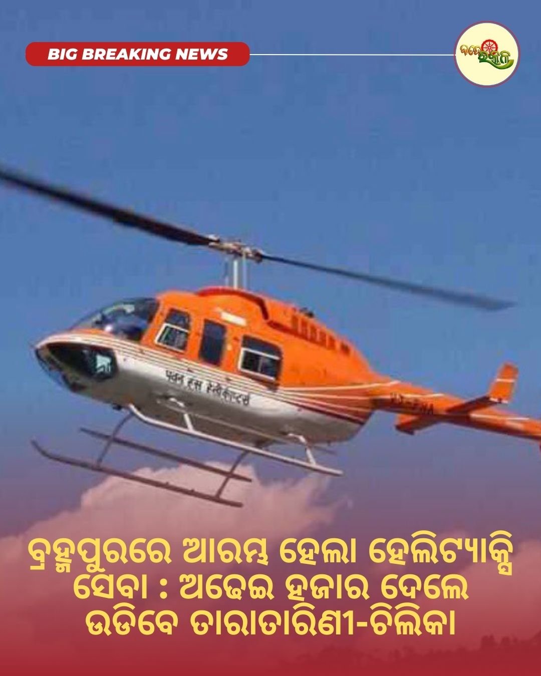 ବ୍ରହ୍ମପୁର : ଗଞ୍ଜାମ ଜିଲ୍ଲାର ପର୍ଯ୍ୟଟକଙ୍କ ପାଇଁ ବ୍ରହ୍ମପୁରରେ ଆରମ୍ଭ ହୋଇଛି ନୂଆ ହେଲିଟ୍ୟାକ୍ସି ସେବା । ଏଣିକି ଆକାଶ ମାର୍ଗରୁ ପର୍ଯ୍ୟଟକ ଦର୍ଶନ କରିବେ ମା’ ତାରାତାରିଣୀଙ୍କ ପୀଠ ସହ ନୀଳ ସମୁଦ୍ର