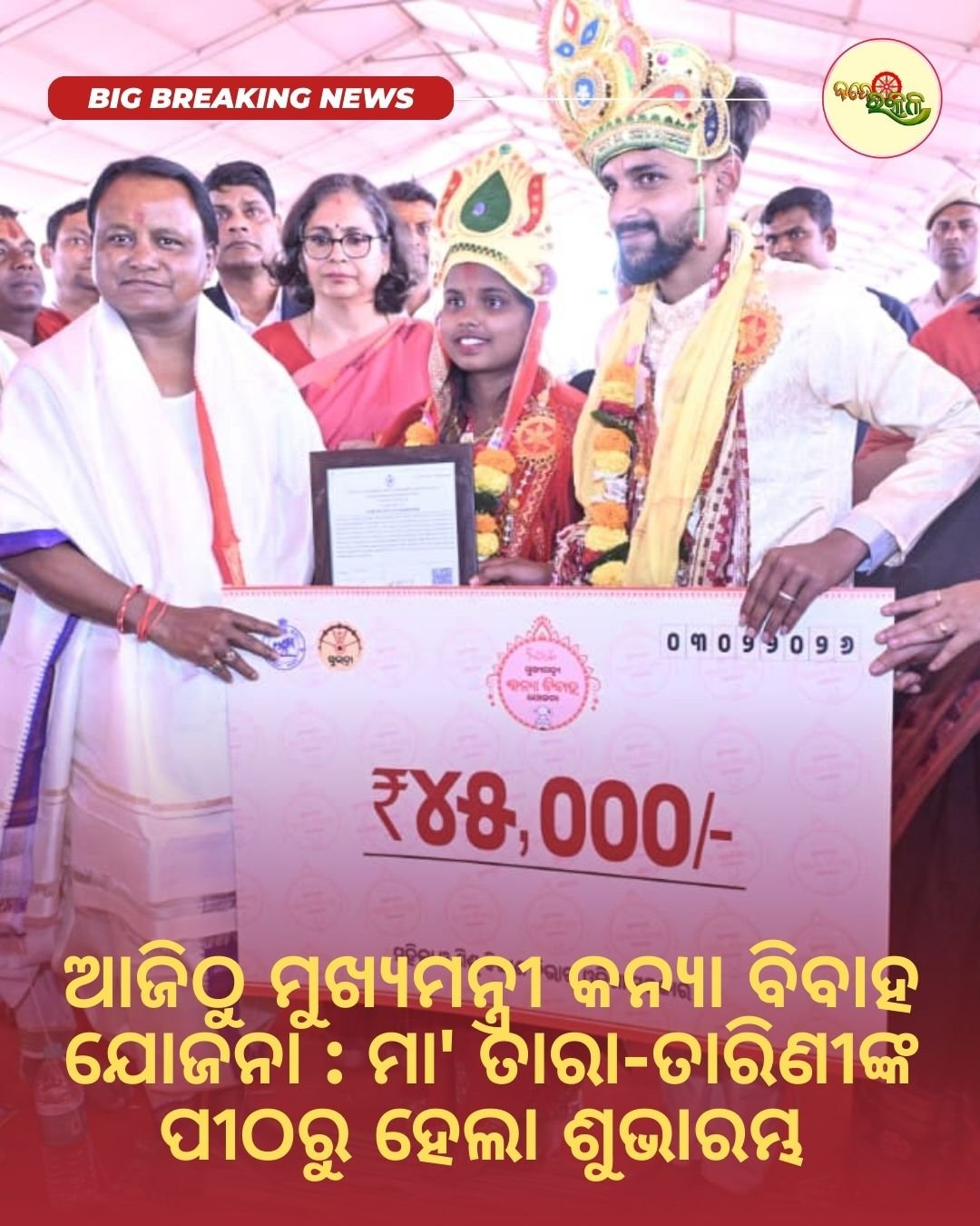 ବ୍ରହ୍ମପୁର : ଆଜିଠୁ ସମଗ୍ର ରାଜ୍ୟରେ ଆରମ୍ଭ ହେଲା ମୁଖ୍ୟମନ୍ତ୍ରୀ କନ୍ୟା ବିବାହ ଯୋଜନା । ଗଞ୍ଜାମର ମା’ ତାରା-ତାରିଣୀଙ୍କ ପୀଠରୁ ଏହି ଯୋଜନାର ଶୁଭାରମ୍ଭ କରିଛନ୍ତି ମୁଖ୍ୟମନ୍ତ୍ରୀ ଶ୍ରୀଯୁକ୍ତ ମୋହନ ଚରଣ ମାଝୀ।