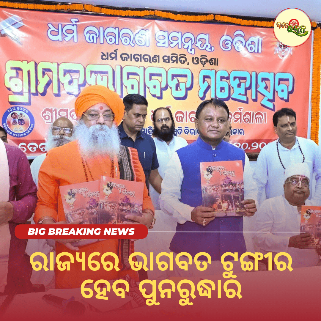 ଧର୍ମ ଜାଗରଣ ସମିତି ଓଡ଼ିଶା ପକ୍ଷରୁ ଭୁବନେଶ୍ବରର କଟକ ରୋଡ ସ୍ଥିତ ତେରାପନ୍ଥ ଭବନ ଠାରେ ଆୟୋଜିତ ହୋଇଥିଲା ଶ୍ରୀମଦ୍ ଭାଗବତ ମହୋତ୍ସବ । ଏହି ମହୋତ୍ସବରେ ମାନ୍ୟବର ମୁଖ୍ୟମନ୍ତ୍ରୀ ମୋହନ ଚରଣ ମାଝୀ ଯୋଗ ଦେଇ ପ୍ରତ୍ୟେକ ଓଡ଼ିଆ ଘରେ ଭାଗବତ ଏବଂ ପ୍ରତ୍ୟେକ ଗାଁର ଭାଗବତ ଟୁଙ୍ଗି ମାନଙ୍କର ପୁନରୁଦ୍ଧାର ଓ ପ୍ରତିଷ୍ଠା କରିବା ପାଇଁ ରାଜ୍ୟ ସରକାର ପ୍ରତିଶ୍ରୁତିବଦ୍ଧ ବୋଲି କହିଥିଲେ । ମୁଖ୍ୟମନ୍ତ୍ରୀ ଏହା ମଧ୍ୟ କହିଥିଲେ ଯେ, ଯୁବବର୍ଗ ଆଜିର ସମାଜର ସମସ୍ତ ବିକାଶରେ ମୁଖ୍ୟ ଭୂମିକା ନିଭାଇଥାନ୍ତି ଏଣୁ ସେମାନଙ୍କୁ ଏହି ମାର୍ଗରେ ନେବା ପାଇଁ ଭାଗବତ ପାଠ ଏକ ବଳିଷ୍ଠ ମାଧ୍ୟମ । ଶ୍ରୀମଦ୍ ଭାଗବତ ଗ୍ରନ୍ଥ, ପରମ୍ପରା, ଭକ୍ତି ଓ ଧର୍ମର ଅମୂଲ୍ୟ ଶିକ୍ଷା ସହିତ ଜନସାଧାରଣଙ୍କୁ ଭଗବତ କାର୍ଯ୍ୟରେ ସଂପୃକ୍ତ କରେ । ସେହି ଦୃଷ୍ଟିରୁ ଏହି ମହୋତ୍ସବ ଆମ ସମାଜ ପାଇଁ ଅତ୍ୟନ୍ତ ଗୁରୁତ୍ୱପୂର୍ଣ୍ଣ ।
