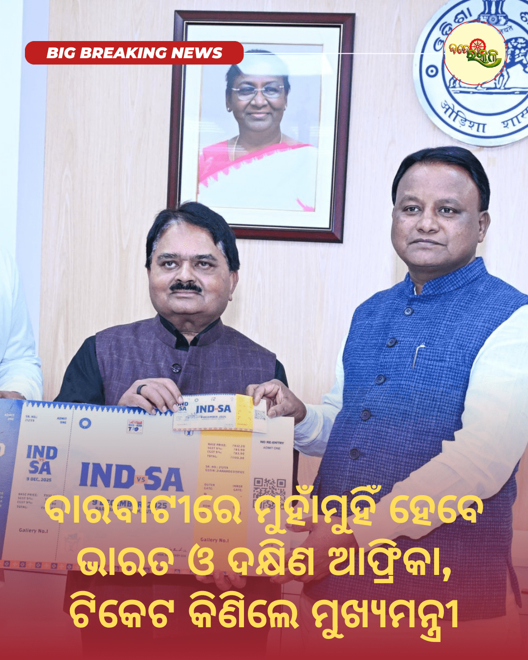 ବାରବାଟୀରେ ମୁହାଁମୁହିଁ ହେବେ ଭାରତ ଓ ଦକ୍ଷିଣ ଆଫ୍ରିକା, ଟିକେଟ କିଣିଲେ ମୁଖ୍ୟମନ୍ତ୍ରୀ