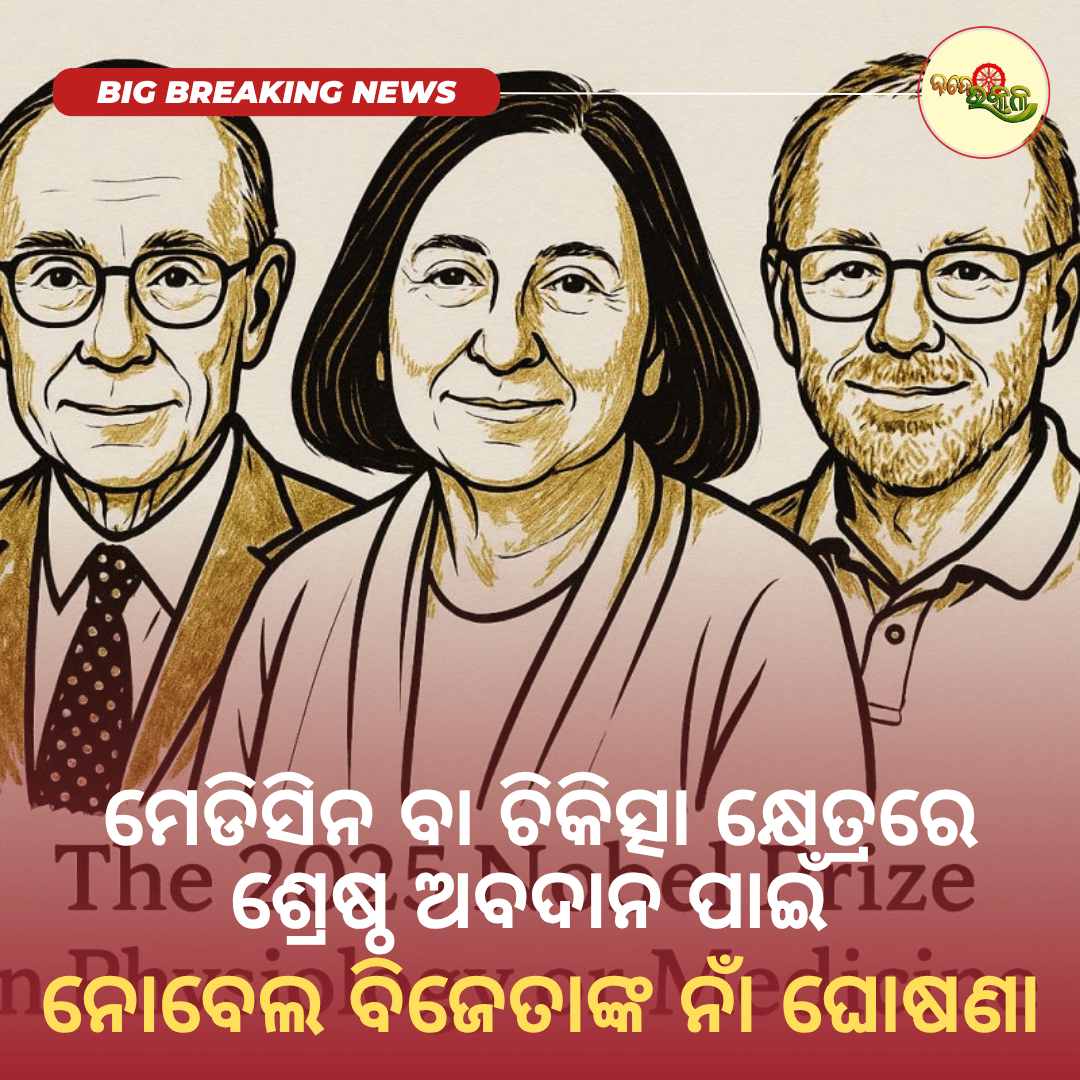 ଚଳିତ ବର୍ଷ ୩ ଜଣଙ୍କୁ ମେଡିସିନରେ ମିଳିବ ନୋବେଲ ପୁରସ୍କାର। ମ୍ୟାରୀ କେ ବ୍ରୁଙ୍କୋୱ (ଆମେରିକା), ଫ୍ରେଡ ରାମସଡେଲ୍ଲ (ଆମେରିକା) ଓ ଶିମୋନ ସାକାଗୁଚି (ଜାପାନ)ଙ୍କୁ ମେଡିସିନରେ ନୋବେଲ ପୁରସ୍କାର ପାଇବେ l